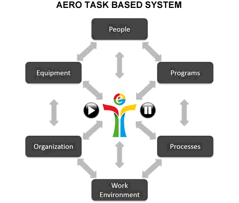The AERO System (shown in the graphic below) is a core element of our advanced error reduction technology. It is an interdependent system where individuals aware of and managing their personality tendencies interact with people, programs, processes, work environments, organization and equipment.